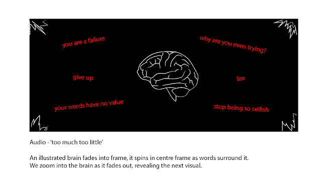 For example, one of the key changes I made was deciding to have the crying eyes visual come before the brain visual, as timing wise it worked better with the lyrics spoken.